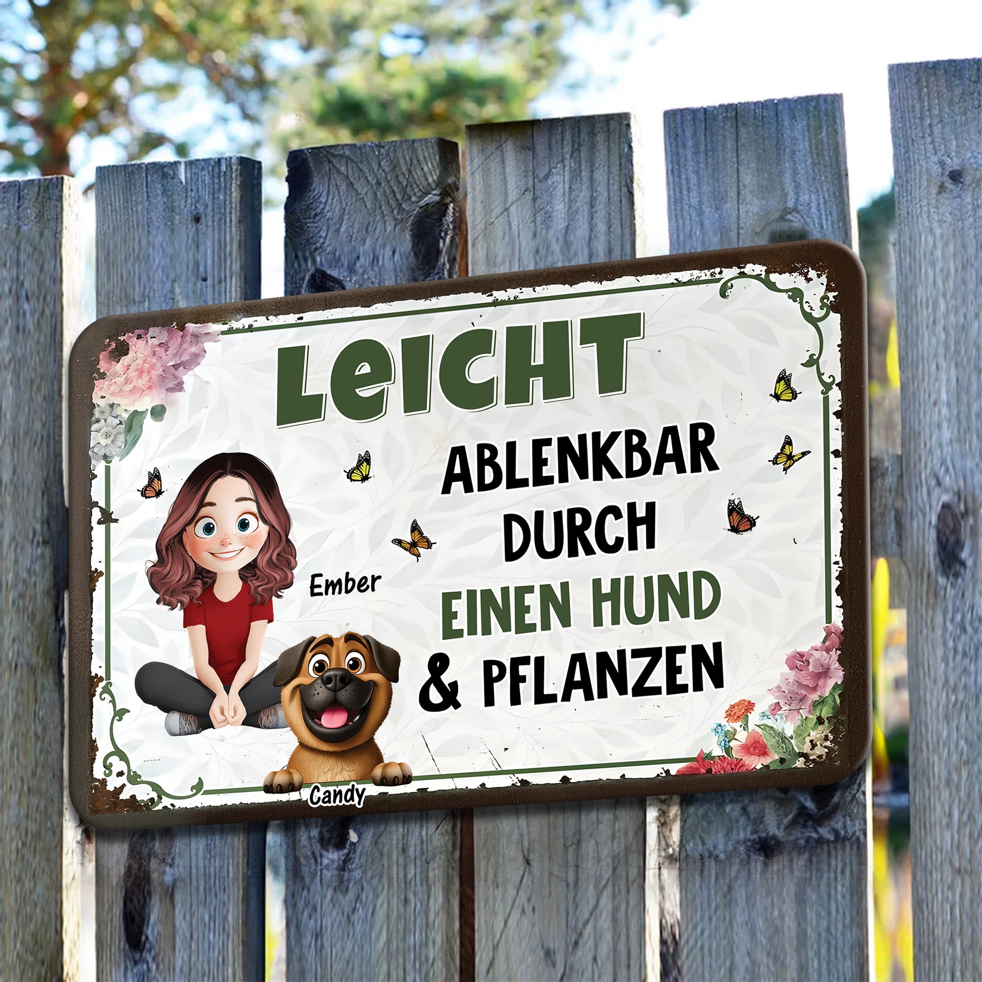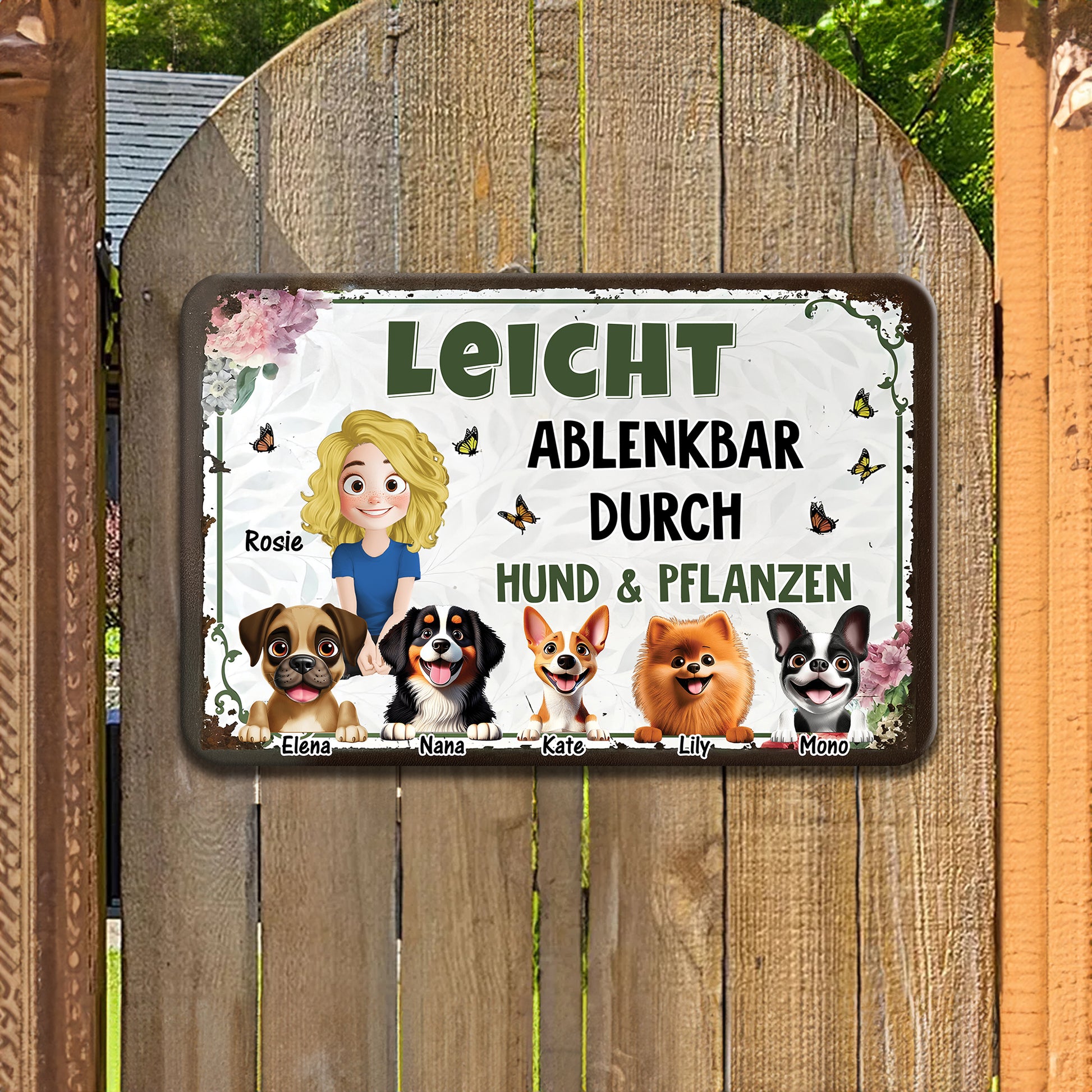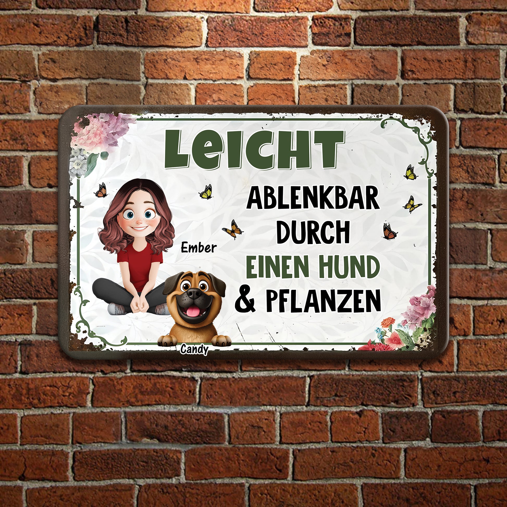 Leicht Ablenkbar Durch Hunde Und Pflanzen - Plaque En Métal Pour Amoureux Des Animaux