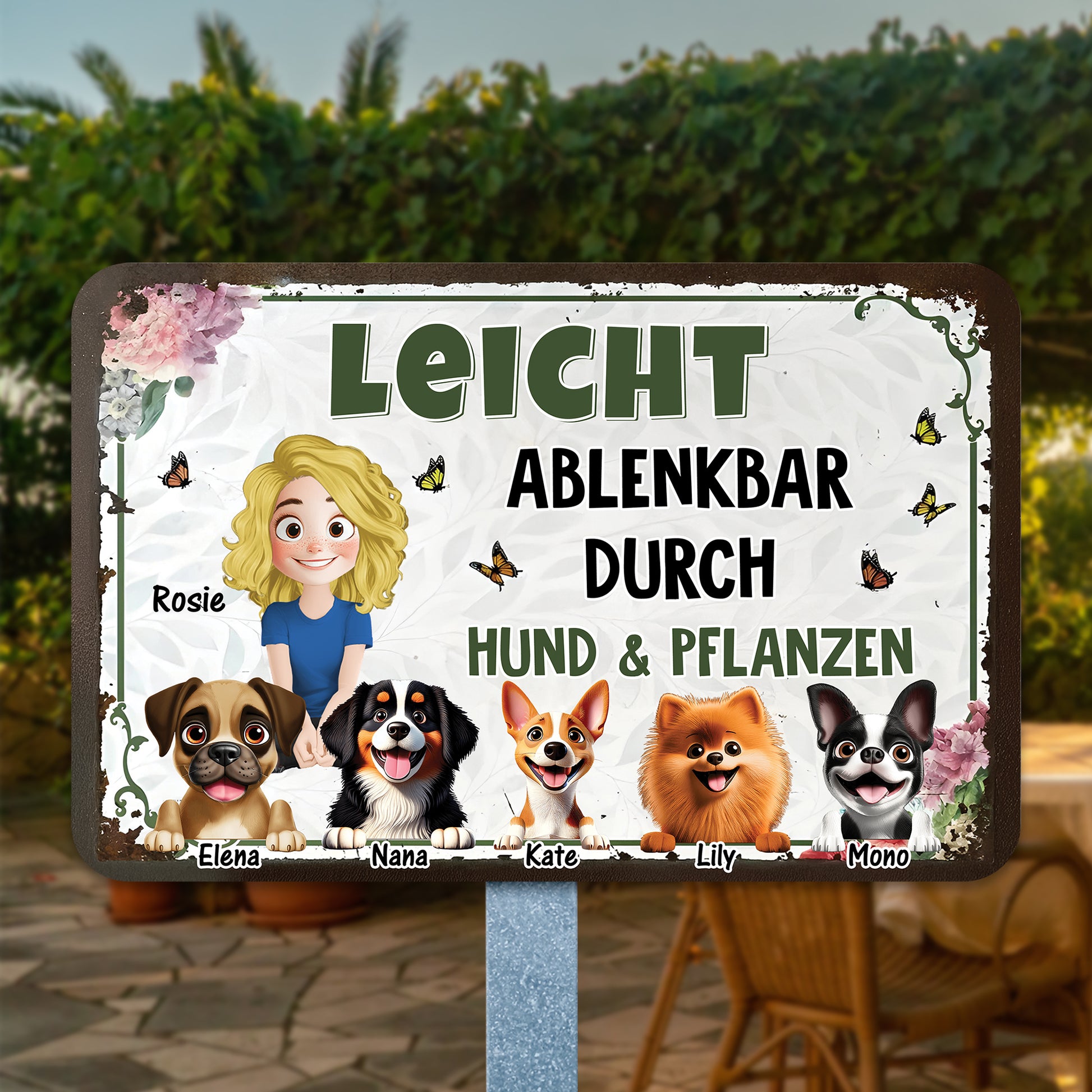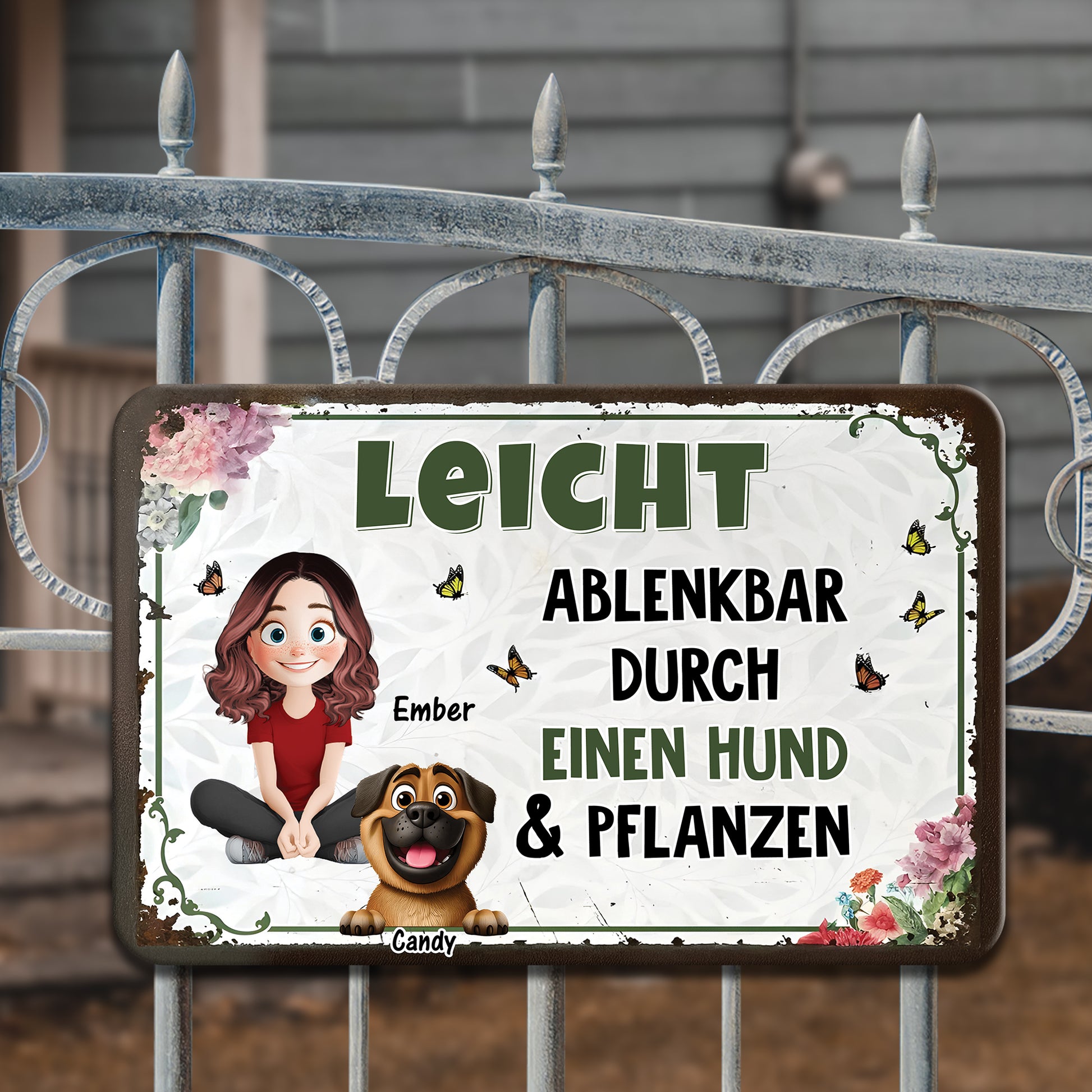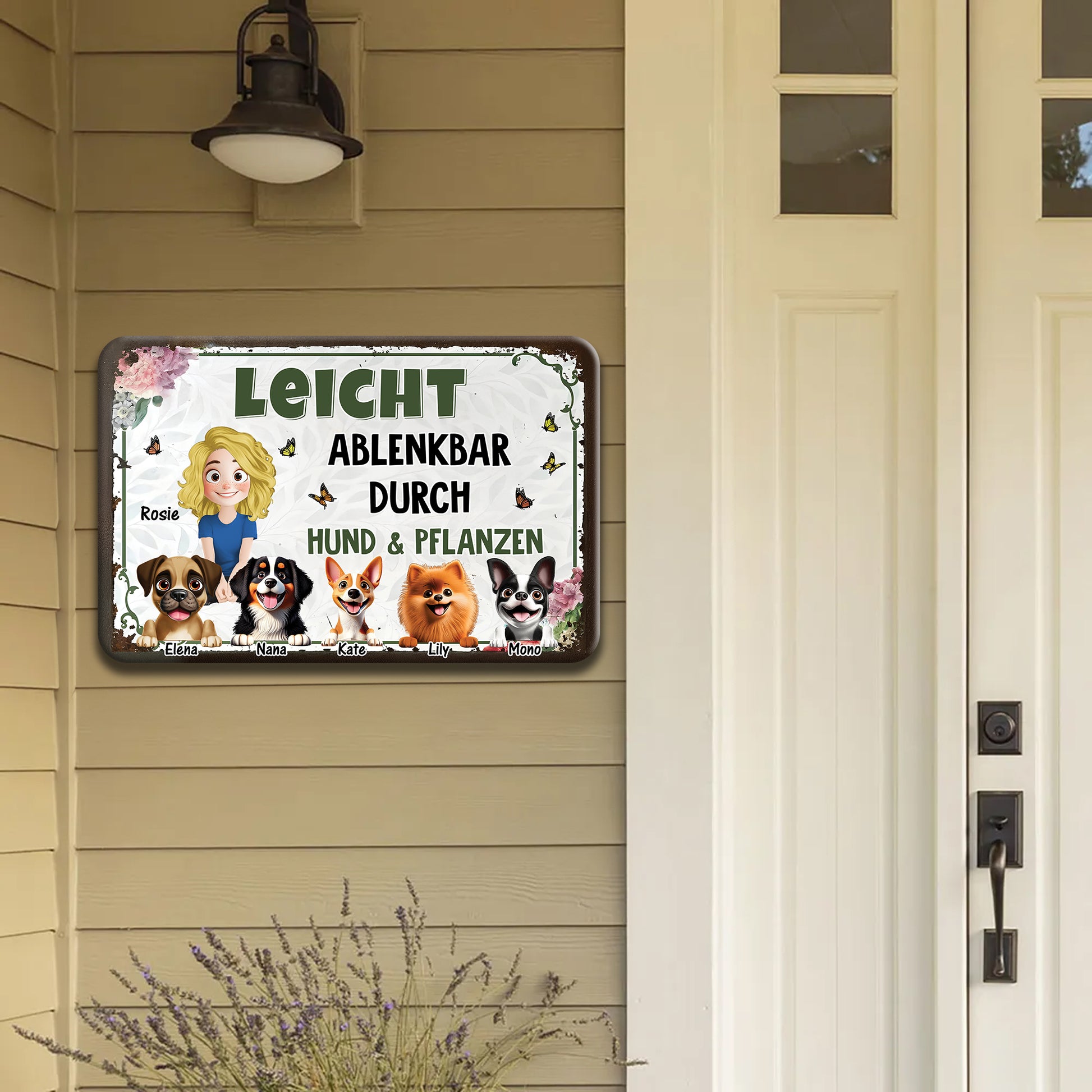 Leicht Ablenkbar Durch Hunde Und Pflanzen - Plaque En Métal Pour Amoureux Des Animaux