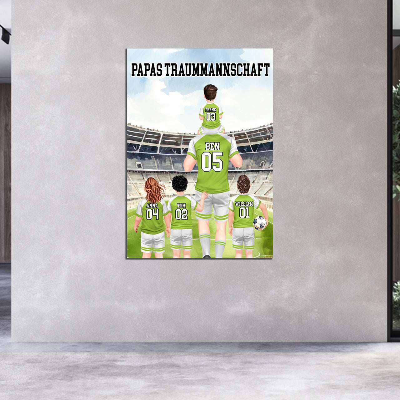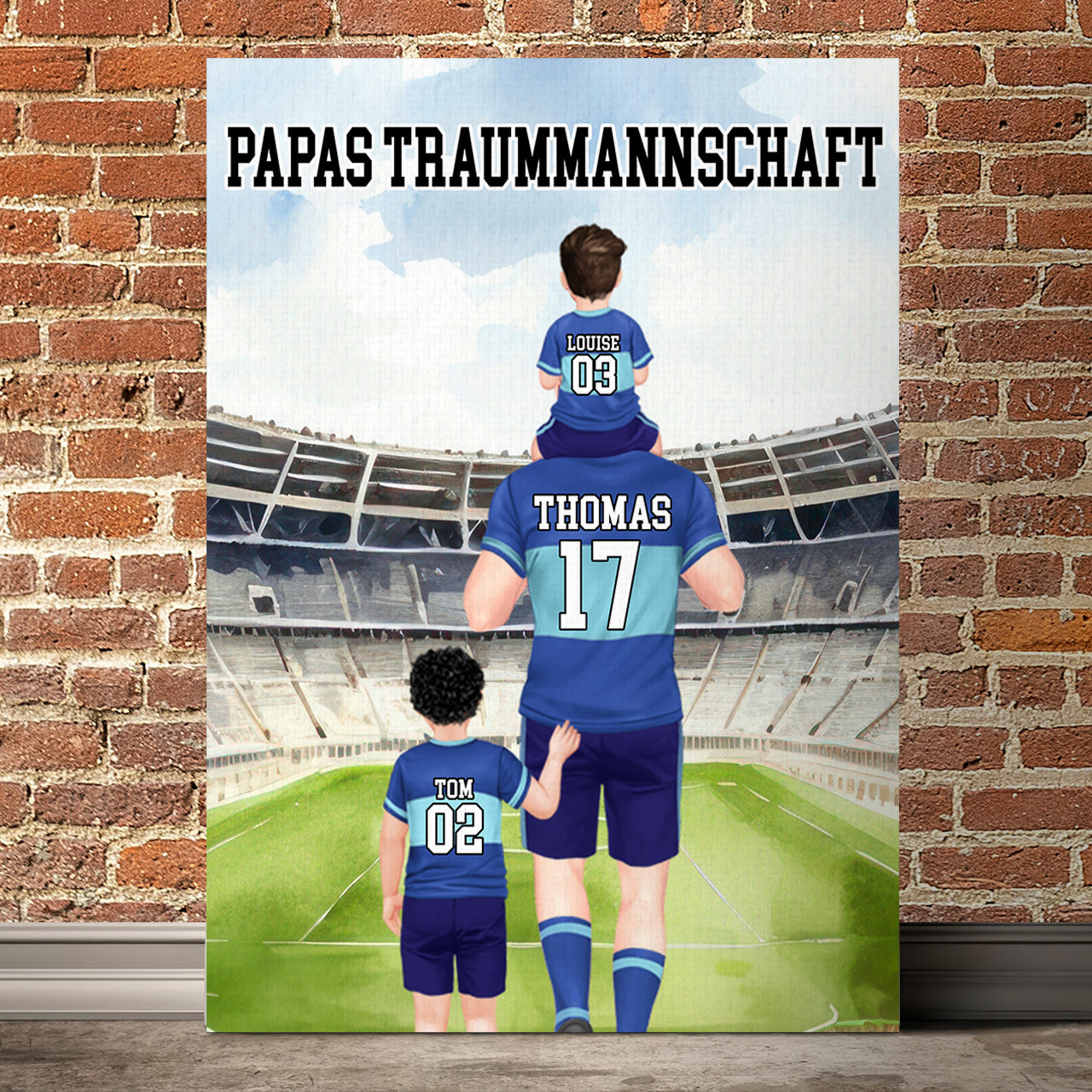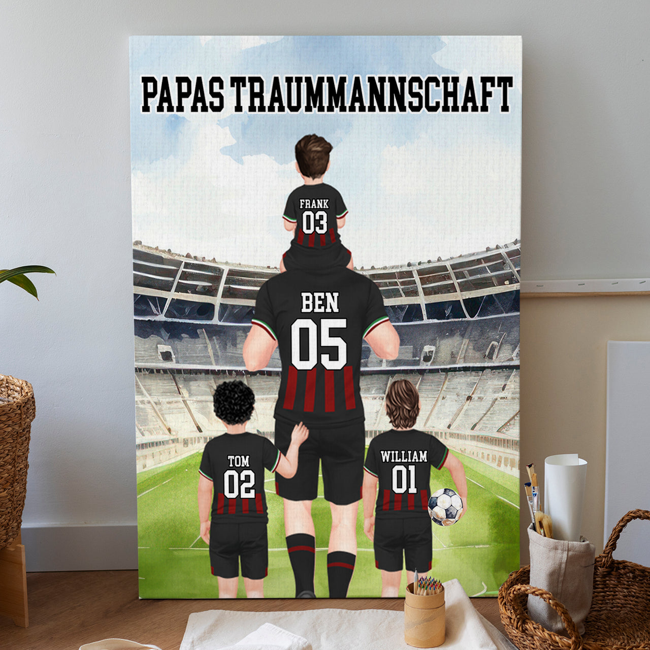Papas Traummannschaft - Personalisierte Leinwand, Erinnerungsgeschenk