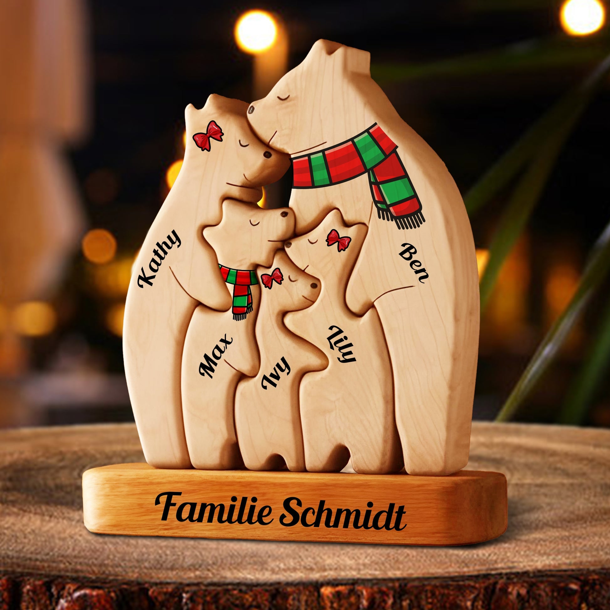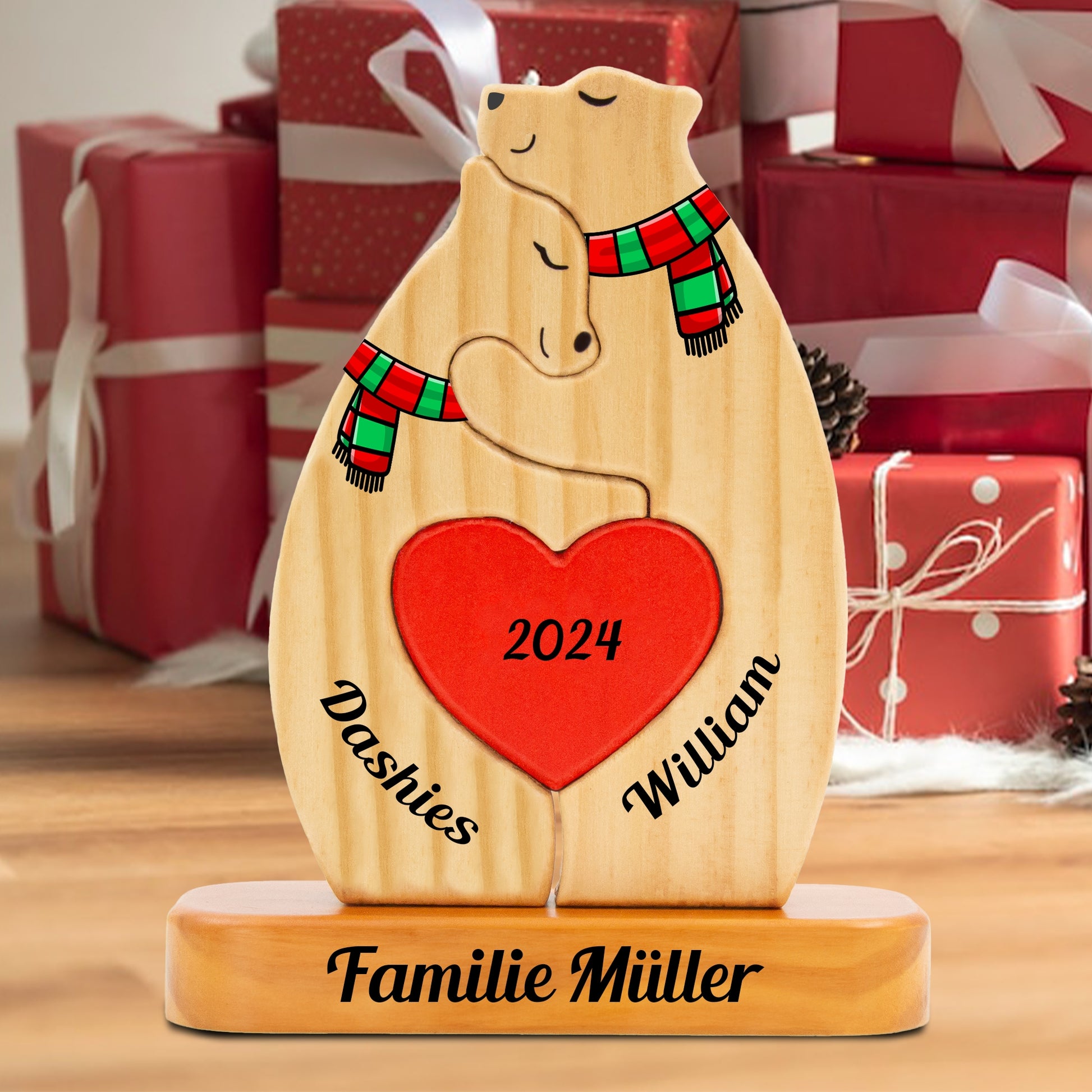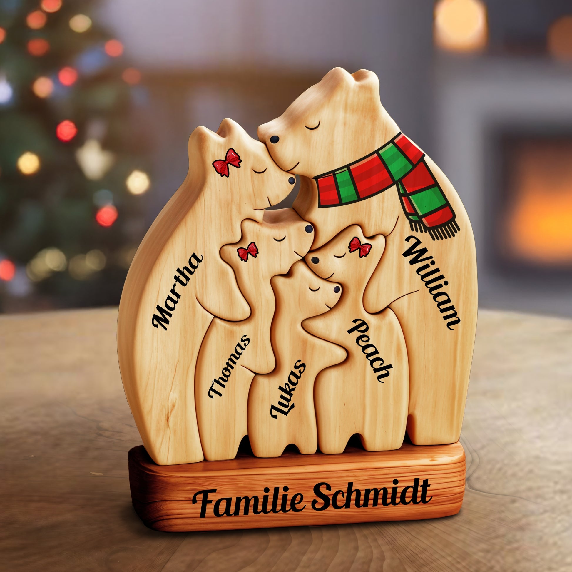 Personalisierte Holz-Bärenfamilie-Puzzle - Holz-Bär mit Schal - Weihnachtsandenken für die Familie