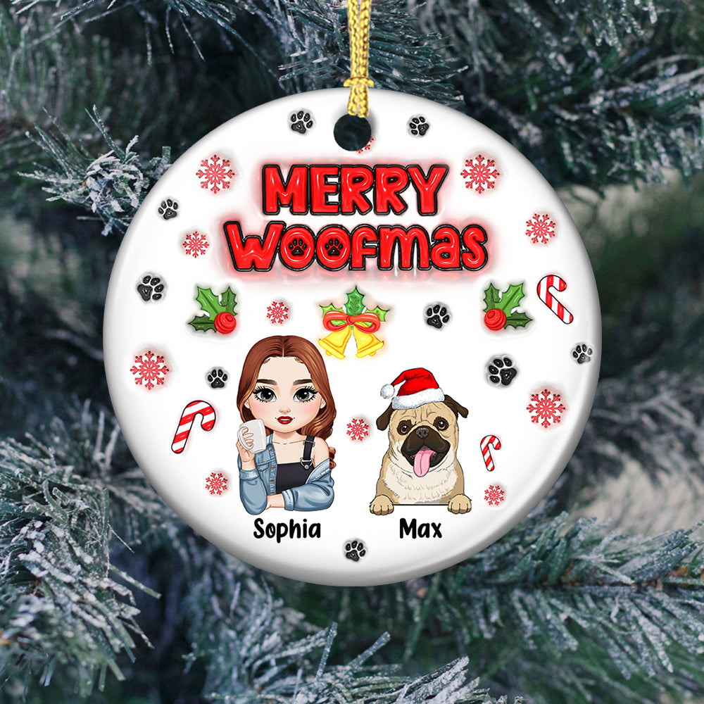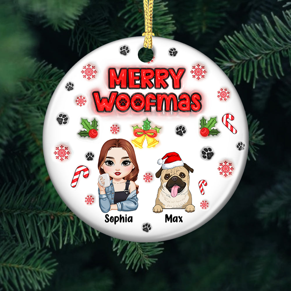 Personalisierte Merry Woofmas Hundemama Ornament - 3D Aufgeblasener Effekt Keramik Weihnachtsornament