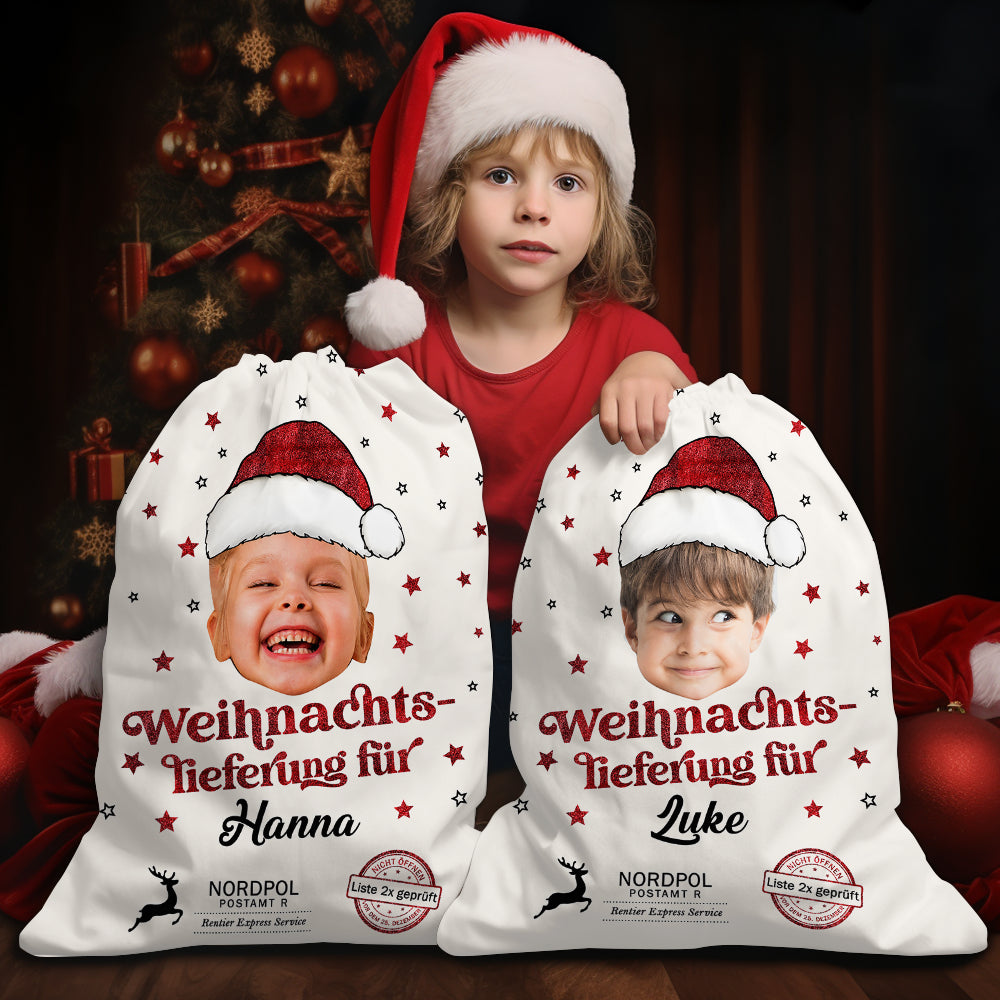 Weihnachtslieferung Sack - Glitzernder Weihnachtssack mit Sonderlieferung - Personalisierter Weihnachtssack - Weihnachtsgeschenke